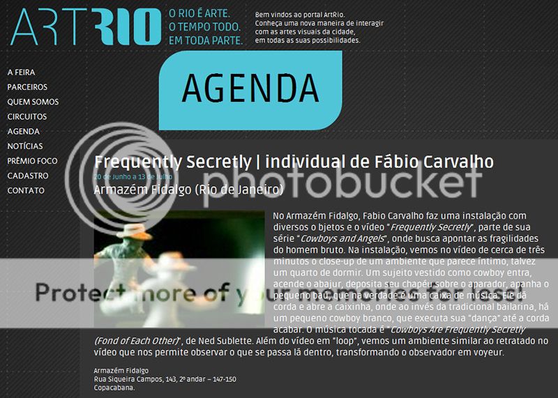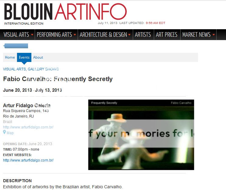 Entrevista de Fábio Carvalho para Elisa de Magalhães, no programa "Arte Revista", da Rádio MEC AM (800 Khz; www.radiomec.com.br) em 26/06/2013, sobre a instalação "Frequently Secretly", no Armazém Fidaldo, da Artur Fidalgo galeria (RJ).