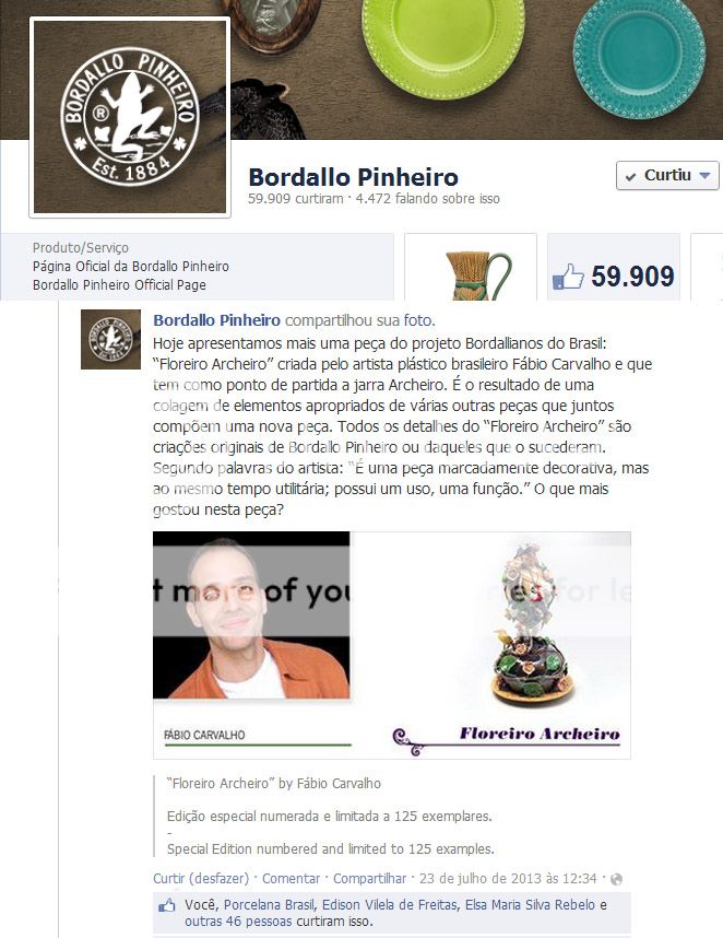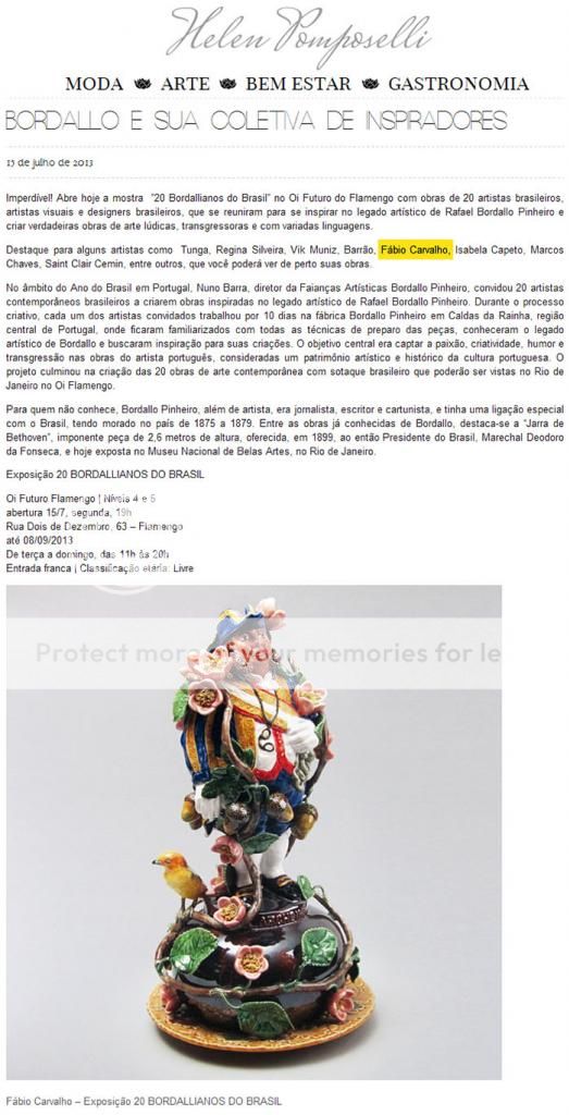 Depois de ter integrado a Residência Artística "Bordallianos Brasileiros" na Fábrica de Faianças Artísticas Bordallo Pinheiro em Caldas da Rainha, Portugal, em 2011, Fábio Carvalho participou de julho a setembro de de 2013 de uma série de três exposições de lançamento da coleção "20 Bordallianos do Brasil" pelo país, A primeira aconteceu no dia 3/7, no Museu de Artes e Ofícios, em Belo Horizonte. Nas exposições, Fábio Carvalho apresentou sua peça Floreiro Archeiro.