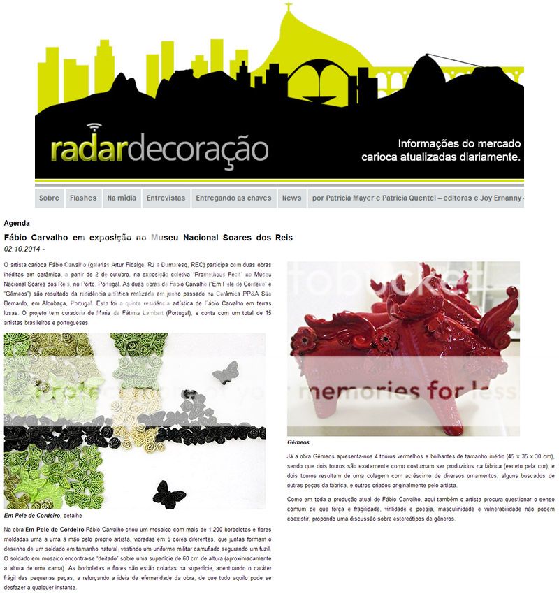 Nos trabalhos de Fábio Carvalho ficamos frente a frente com imagens ou objetos plenos de beleza, sedução e delicadeza, talvez fazendo-nos até por vezes esquecer que estes estão entremeados ou partem de elementos que representam, em particular tendo em mente a história recente brasileira, violência e repressão. Estamos portanto diante de um dilema provocado por um discurso aparentemente contraditório, e cabe a cada um tomar a sua posição frente a este dilema.